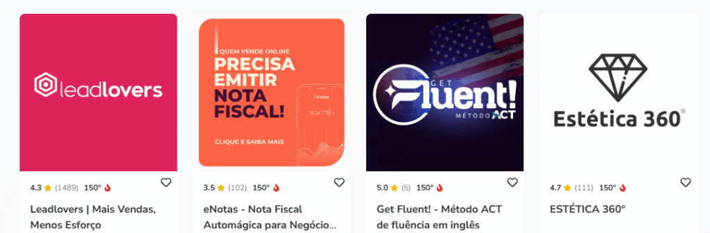 Na Hotmart existe a métrica de temperatura (0 a 150) que mostra a popularidade de um produto.